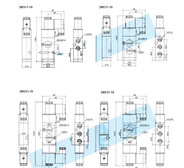 3 | 2W511-10 | 五( 三) 口二位、板接式、單線圈、接管口徑1/4" | ||||